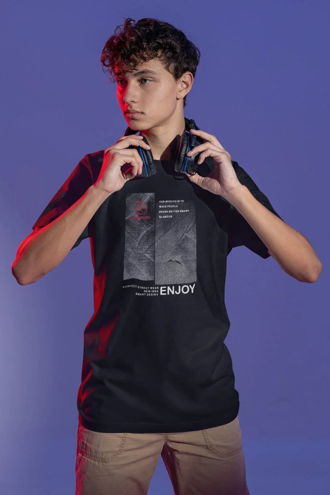 Comfy Cotton T-shirt, designed for ultimate comfort and style. This classic black tee is perfect for any occasion, whether you're lounging at home or out with friends. The soft, breathable fabric ensures all-day wearability.