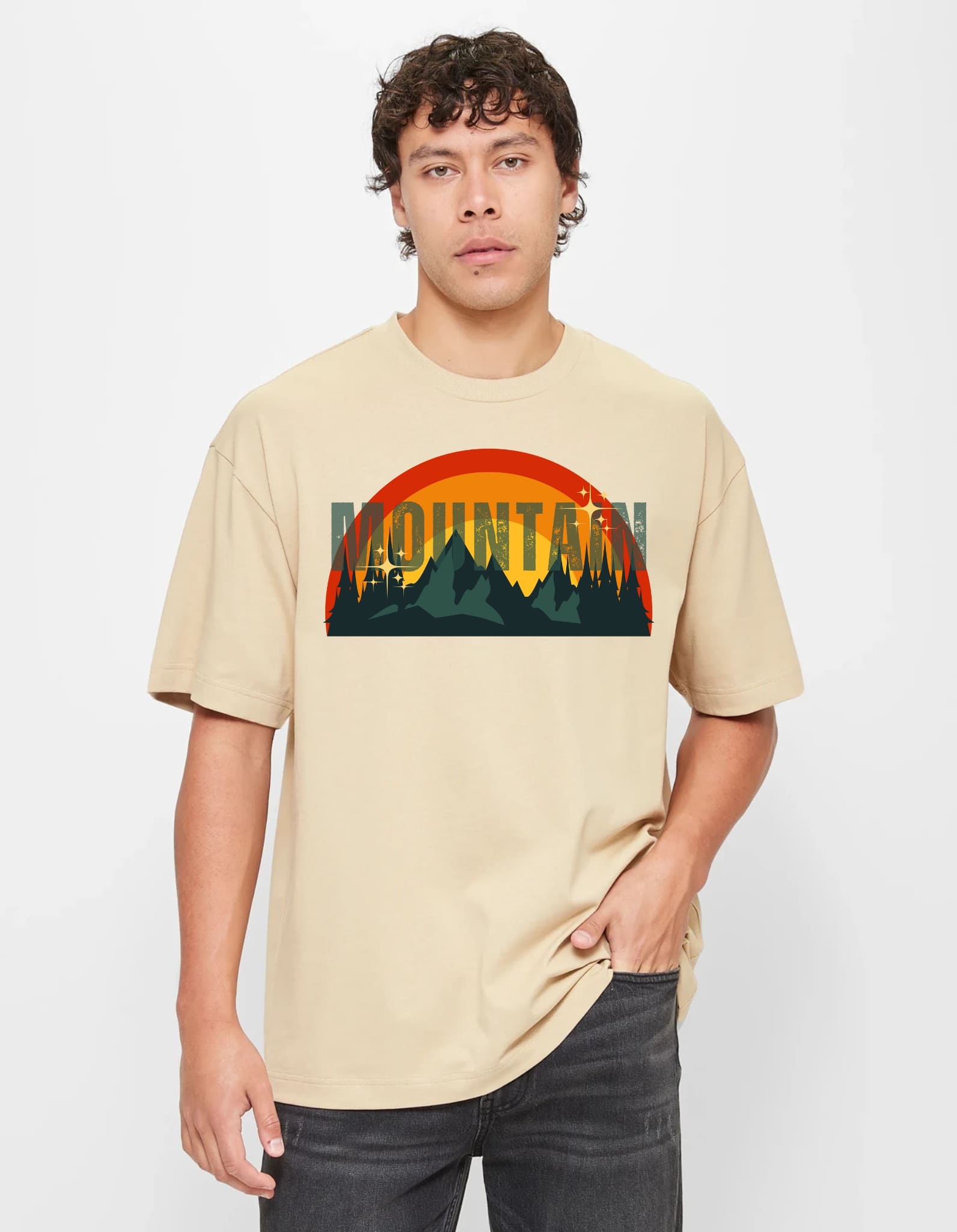 The relaxed, oversized fit allows for effortless movement, while the unique mountain graphic makes a bold statement about your passion for nature and exploration. Available in a variety of colors, this t-shirt is both versatile and stylish, making it a perfect addition to any outdoor or casual wardrobe.