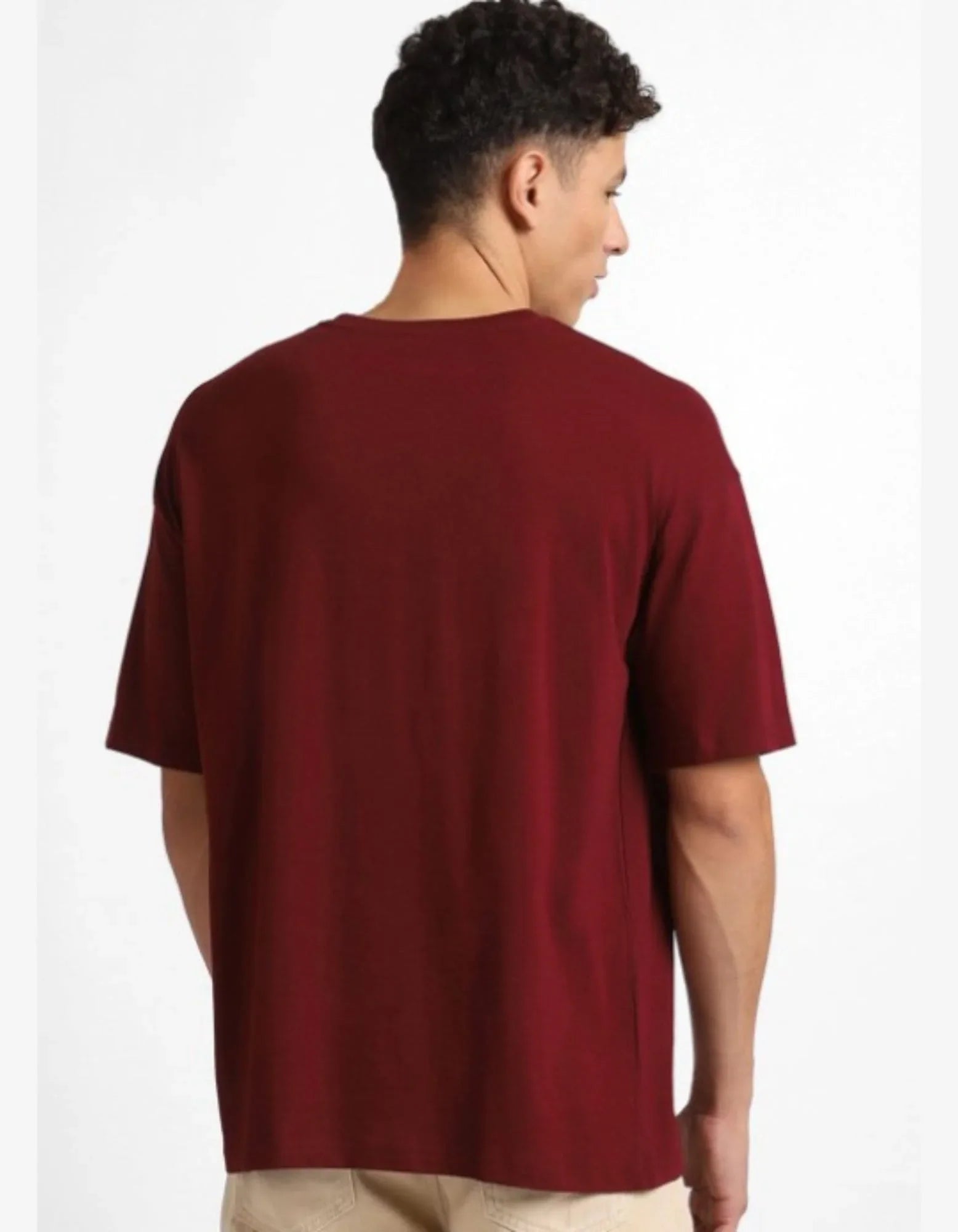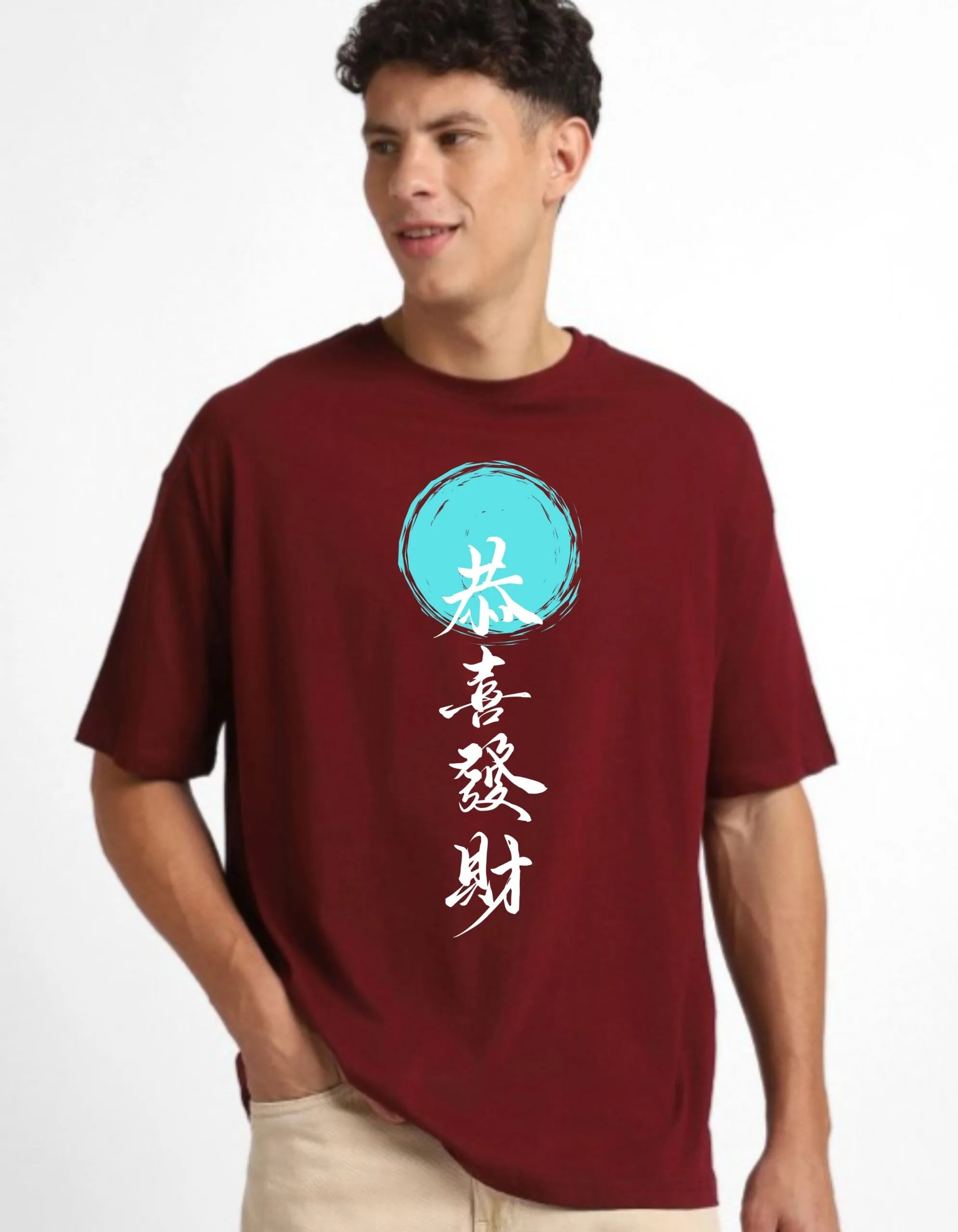 Shiny Oversized T-Shirt in a rich maroon hue, featuring striking Japanese writing that adds a unique flair to your style. Crafted from high-quality materials, this t-shirt offers a comfortable fit.