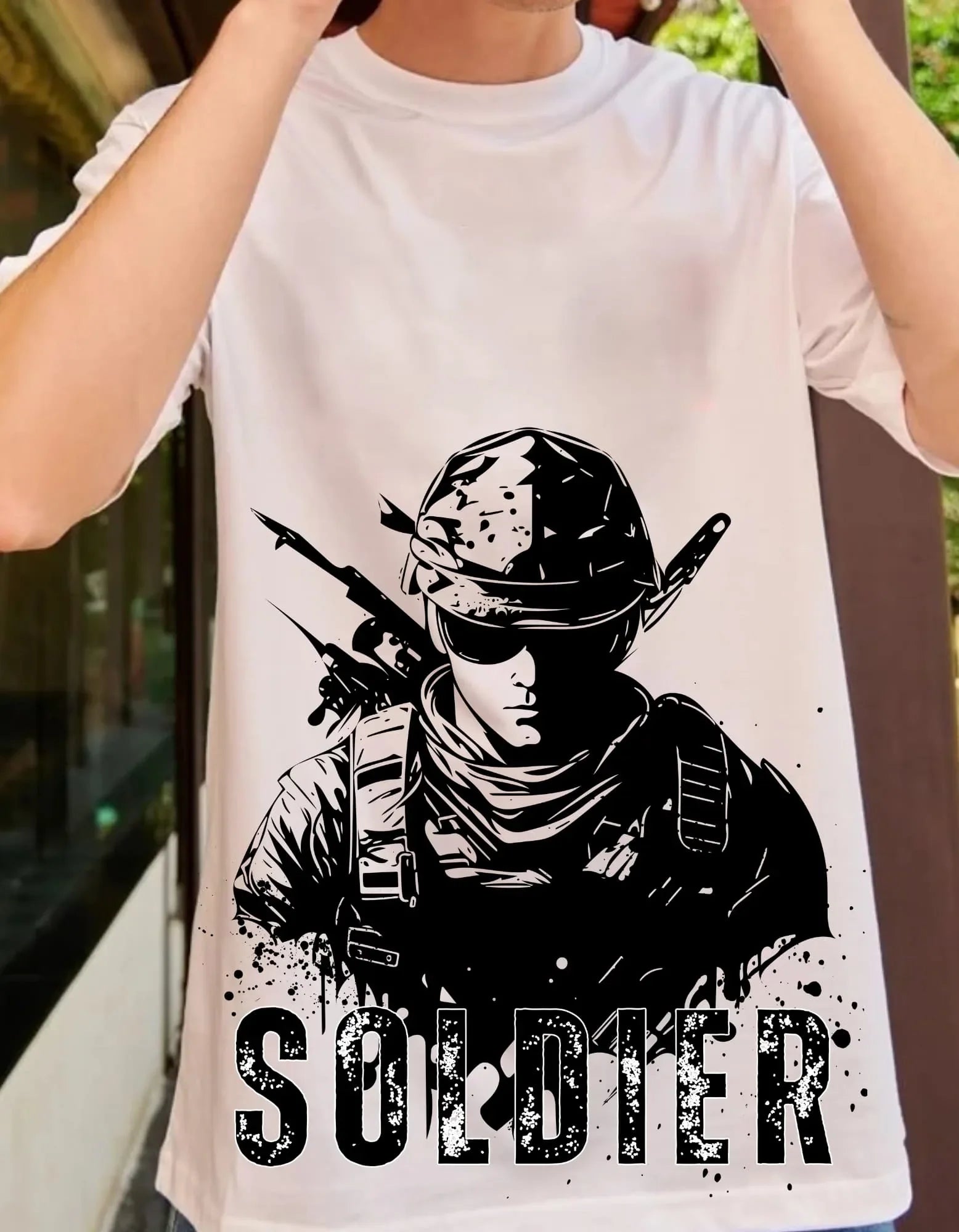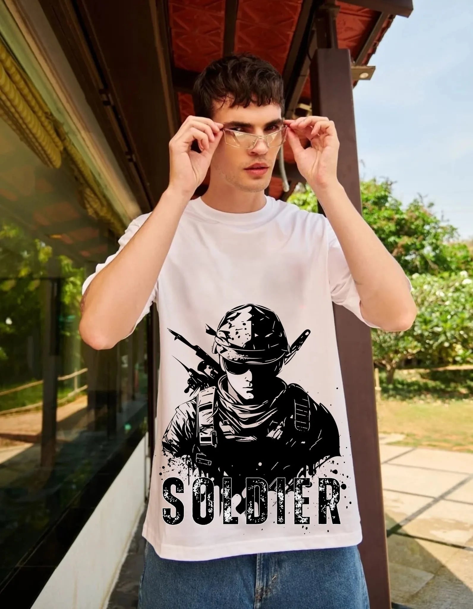 Soldier White Oversized T-Shirt, designed for both comfort and style. Crafted from soft, breathable fabric, this t-shirt offers a relaxed fit that drapes effortlessly, making it perfect for everyday wear.