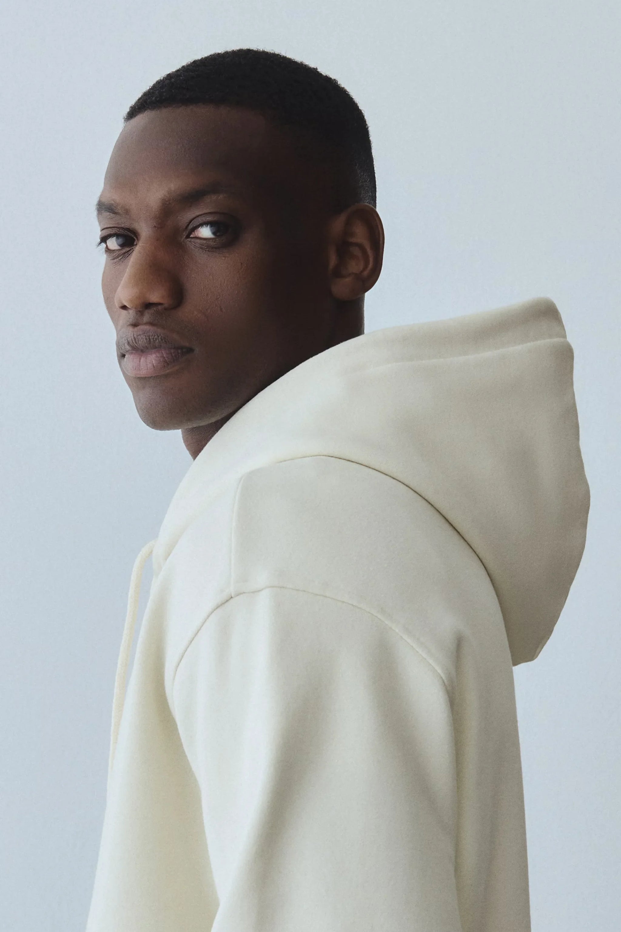 Hoodie in midweight sweatshirt fabric made from a cotton blend with a soft brushed inside. Jersey-lined, drawstring hood, dropped shoulders, long sleeves, a kangaroo pocket and wide ribbing at the cuffs and hem. a generous oversized silhouette.